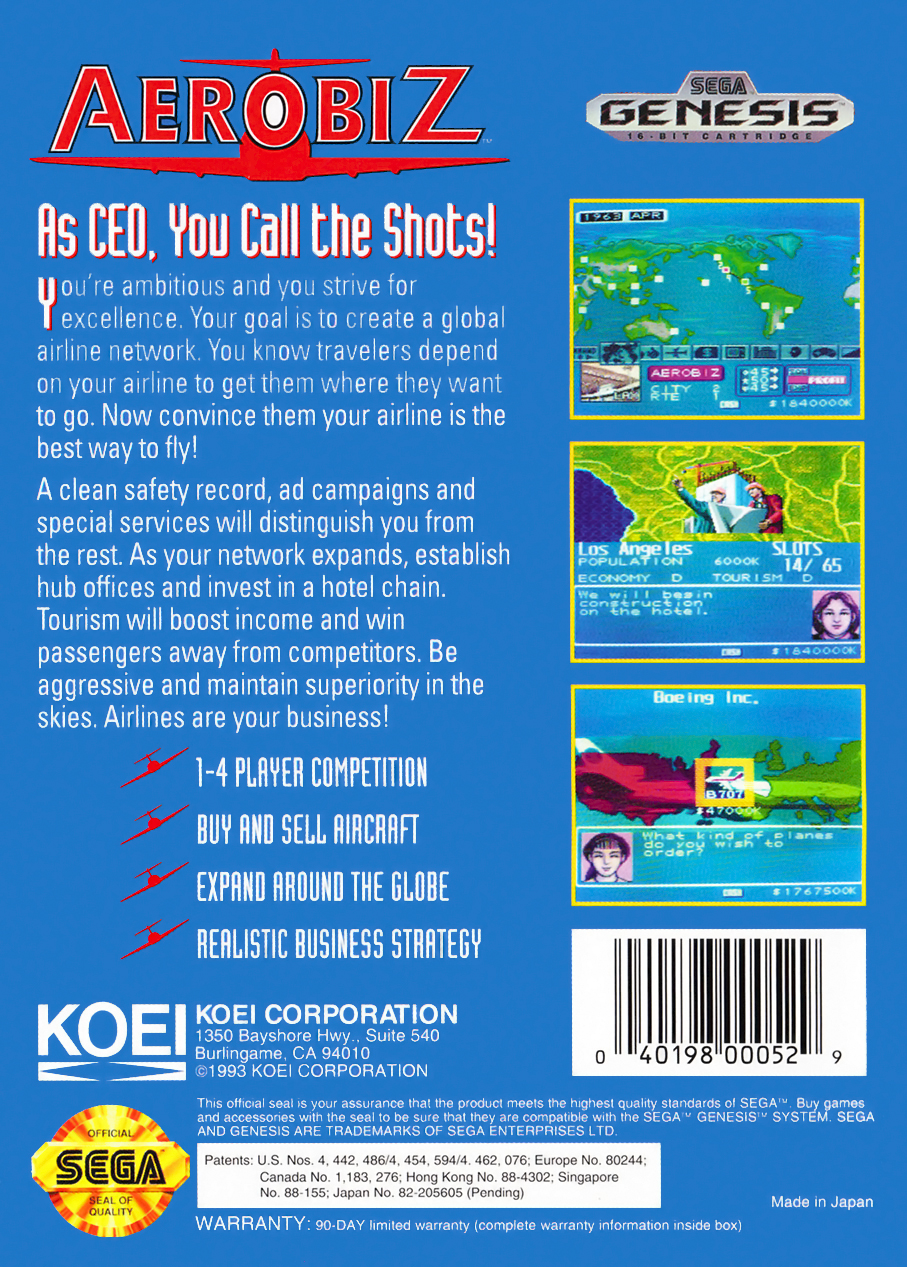 You are the CEO of an airline company. Your goal is to become the most successful airline in the world by connecting all 22 cities with air routes, maintain a profit, and meet the required quota of passengers. If you cannot turn a profit for a year or meet the victory conditions in 32 years you lose. Some strategic decisions you must make include negotiating for open air routes, purchasing or selling aircraft, invest in branch offices and hotels, advertise your airline and set budgets. You must also pay attention to statistics like quarterly and annual sales reports, as well as city data. World events also affect your airline, from natural disasters to war and even the Olympic games, all of which will affect how many passengers you get. All the planes in the game are based on real-life aircraft, such as the Boeing 747 and the Concorde.