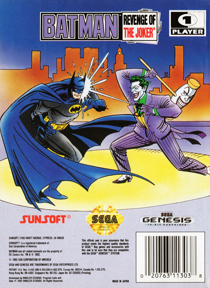 The Joker lives again in SunSoft's sequel to their NES original. The Joker has somehow managed to escape from Arkham Asylum once again, and Batman must fight him across seven stages to restore peace to Gotham City.
