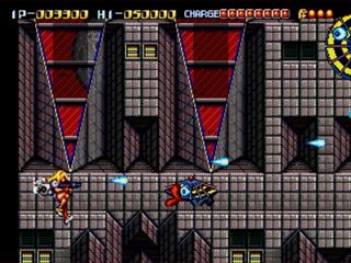 Battle Mania Daiginjō is a comical anime-themed scrolling shooter, and the sequel to Trouble Shooter. The player controls the Dirty Pair-esque Mania and Maria simultaneously, with Maria following closely behind Mania, and also able to turn around and fire to the rear. Unlike most shooters, Mania has a health meter which can be replenished via pickups. There are a variety of weapons to choose from at the start of each stage, and during the game, weapons can be powered up. There is also a screen-clearing bomb attack, but it must be allowed to charge back up each time it is used.