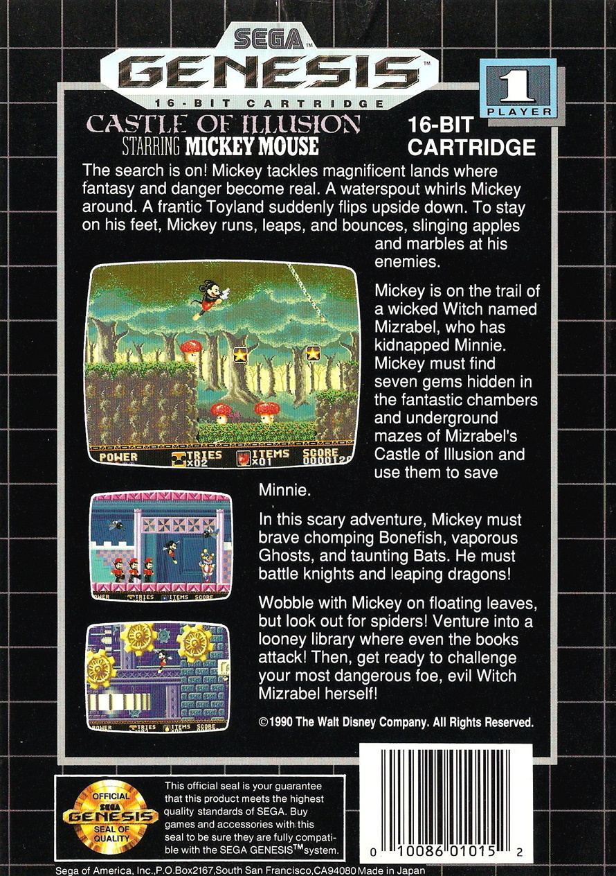 This is the first Mickey Mouse game for Sega consoles. In this game the famous Disney character must face the dangers of weird fantasy lands such as an enchanted forest and a toy world. Mickey must rescue his girlfriend Minnie who's been kidnapped by the evil witch Mizrabel.