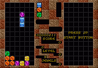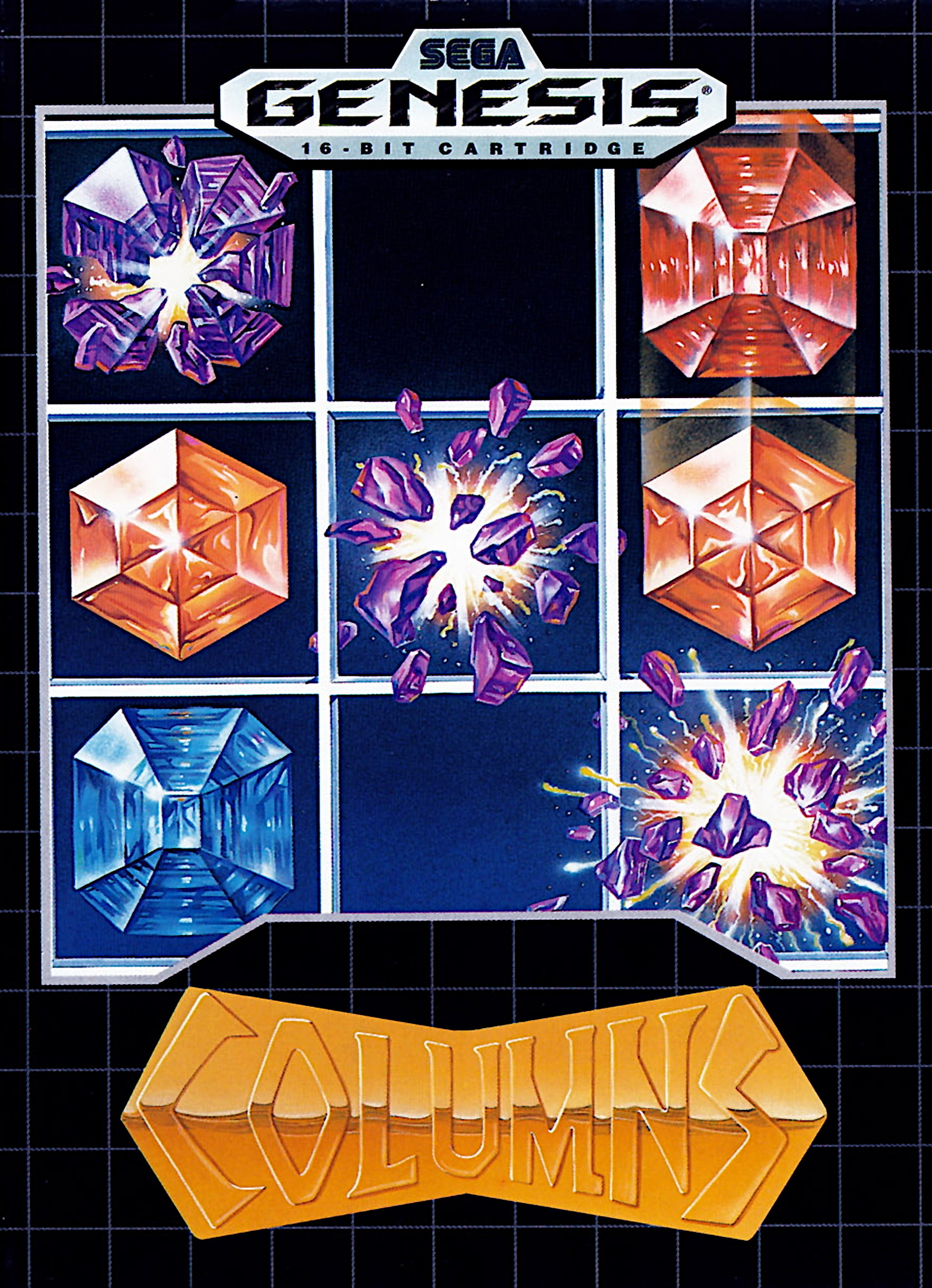 Columns is loosely derived from Tetris, as it involves arranging falling blocks in such a way as to clear them. However, in columns they are groups of 3 same-size but varying color blocks, which must be arranged into sequences of 3 or more, either horizontally, vertically or diagonally. Sequences of 4 or 5 count for double or triple points, and diagonal sequences score the most. The real trick is to set up 'combos' - where one line causes other blocks to drop so as to create other lines.