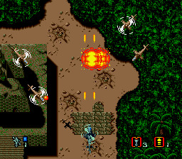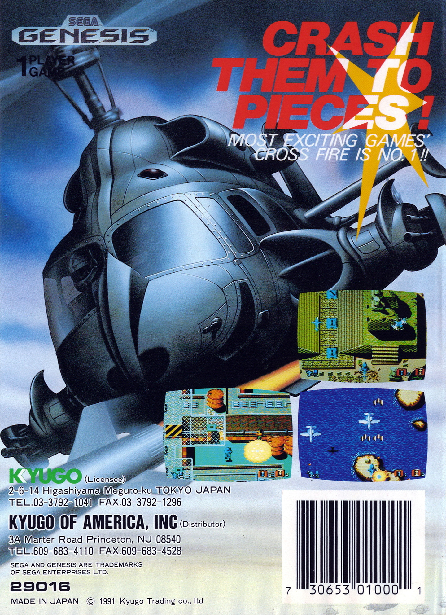 Fly a helicopter into hostile territory to rescue hostages and make some money on the side. The places the player can choose to fly into are Guatemara (Engrish for Guatemala), Cuba, and Panama. Missions are broken down into three different parts. The first part involves flying a helicopter taking out various enemies. The second part has the player flying a super helicopter into the enemies base. The third part has the player taking control of a soldier on the ground taking out enemies in the base. While on the ground, the player can call in help from the copter only for a limited number of times. Also while on the ground the player can rescue hostages.