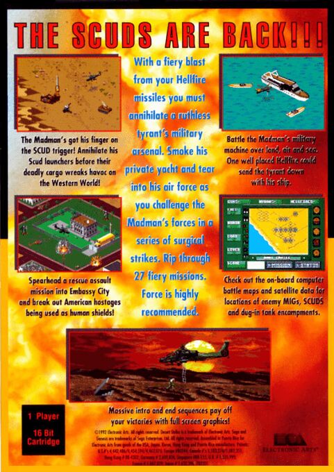 You must fly a specially designed AH-64A Apache on a series of missions to rescue missing-in-action characters, destroy power plants, blow apart SCUD missiles, etc. to take out the enemy defense while trying to find out Kilbaba's plans.