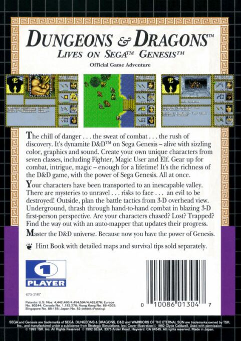 Dungeon & Dragons: Warriors of the Eternal Sun is set in the world of Mystara, a setting of the Dungeons & Dragons game. The characters find themselves in a strange, red-hued world in which the horizon slopes upward in all directions, eventually vanishing into a crimson haze at the limits of sight. Their mission is to find and make allies in this new world or else the kingdom and its culture will perish.