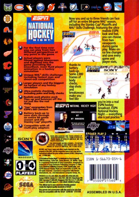 ESPN National Hockey Night was one of the many hockey games released back in the day. This one featured all the NHL teams for its time, but lacked an official players license.