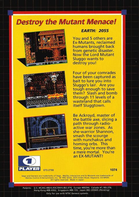 In the game you have to stop mutant Lord Sluggo. You and five of your comrades are not mutants as the everybody on the Earth has become and you know how to recreate the human race after the nuclear war. You have to acquire six genetically pure samples. All you need is to save your comrades from Sluggo, slashing with your battle axe through 11 levels of a wasteland that calls itself Sluggtown.
