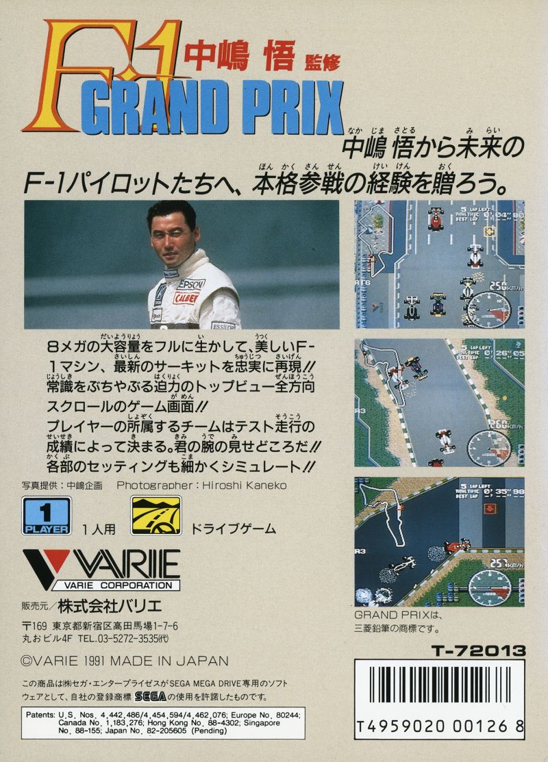 Satoru Nakajima, the first Japanese driver to race full-time in Formula 1, licensed this racing game which combines arcade and simulation elements. The full 1991 season is recreated, with the chance to do individual races or a full season. Before the race you can modify several areas of the car set-up, including engine performance (configurations with higher top speed have slower acceleration), wing downforce (higher top speed means lower grip), tyres (better grip means lower durability) and so on.