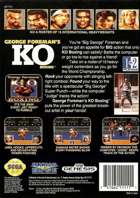 Featuring heavyweight champion George Foreman, this is a boxing simulation where players, taking the role of Foreman, go through a series of twelve rounds against different boxers to win the championship title belt.