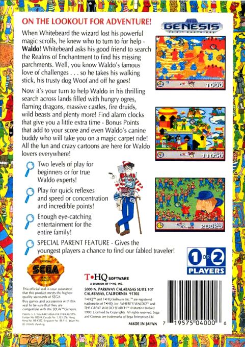 Based on the popular Where's Waldo series of books, the player's goal is to find Waldo, who is hidden in various pictures, before the time on the clock runs out. The player controls a magnifying glass and must click on various items for different effects. Finding a clock adds more time to the search, clicking on a 150 icon adds 150 points to the score, etc.