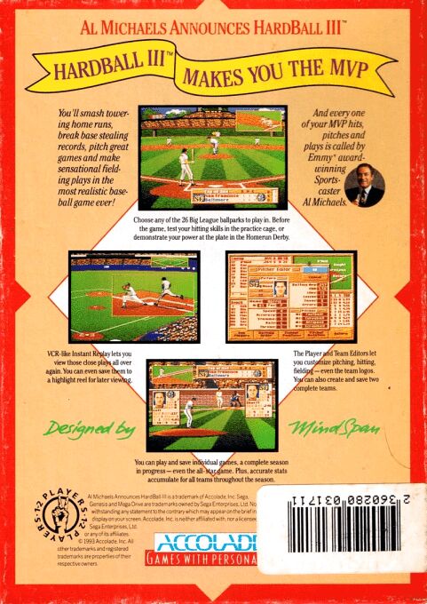 The third game in the Hardball baseball series. This revision features 256 colour VGA graphics, and announcer Al Michaels provides running commentary while you play.