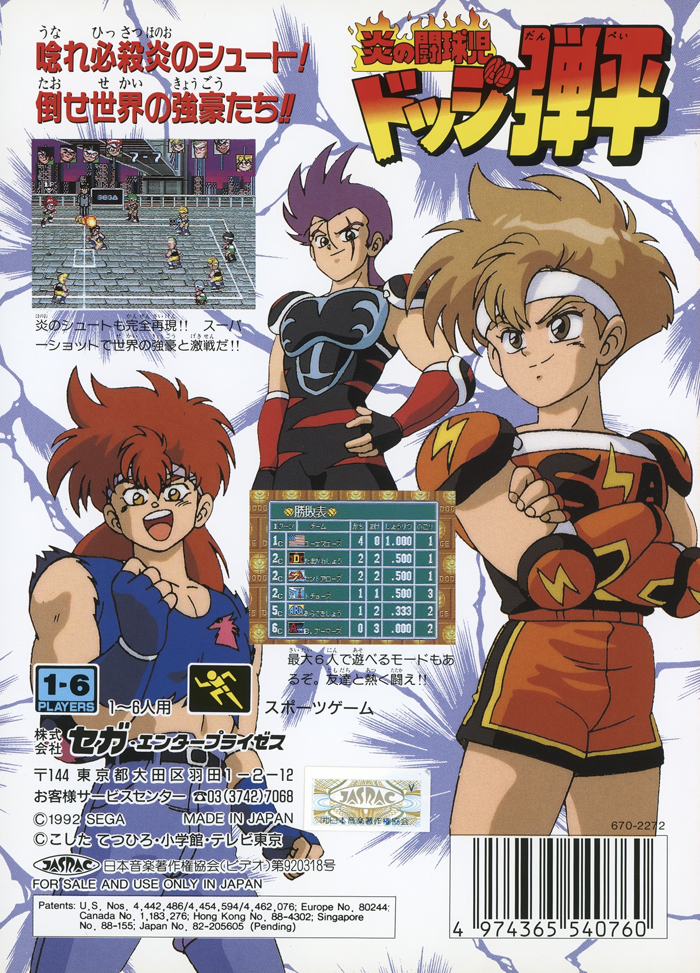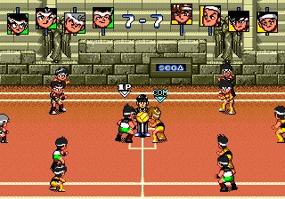 Dodge Danpei is a team dodgeball game, one of several based on the anime and manga created by Tetsuhiro Koshita, which plays strikingly similar to the well-known Super Dodge Ball. Each team has four main players and three support players, and attempts to knock out the opposing team's main members by throwing the ball at them in various ways. Apart from normal throws, the player can also pass to teammates, and execute special power throws which are harder to dodge or catch.
