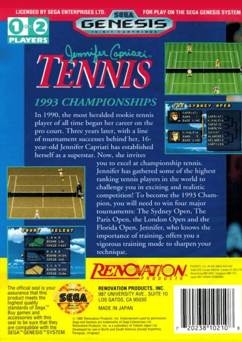 This is a tennis game featuring the game modes Exhibition, Circuits, and Training. Exhibition allows for either singles or doubles play. Circuits mode involves the player competing to win four major tournaments: the Sydney Open, Paris Open, London Open and the Florida Open. The player can also customize their own tennis player by choosing their race,sex, and tennis wear color. Players can also choose whether their tennis player is right or left handed, their type of spin, forehand, and backhand. They can also distribute a set amount of points between skills such as the power forehand, backhand, their footwork, and their net game. The game also offers the option of either playing on lawn, hard or clay surfaces.