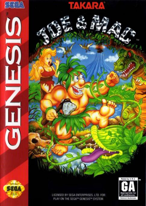Joe & Mac: Caveman Ninja features the characters Joe and Mac as cavemen ninjas in a multi-level platform area where the player has to jump and club incoming enemies. They can also throw at them from distance using such weapons as boomerangs, bones, fire, flints, electricity and stone wheels. The objective of the game is to rescue a group of girls who were kidnapped by a rival tribe.