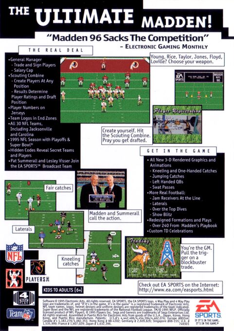Still includes windowless passing, all new Madden-designed strategies and team match-up that shows how your players stack up to the other team in their position.