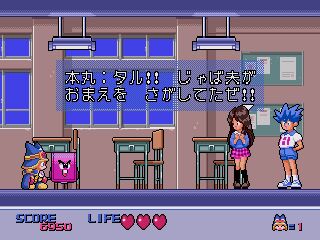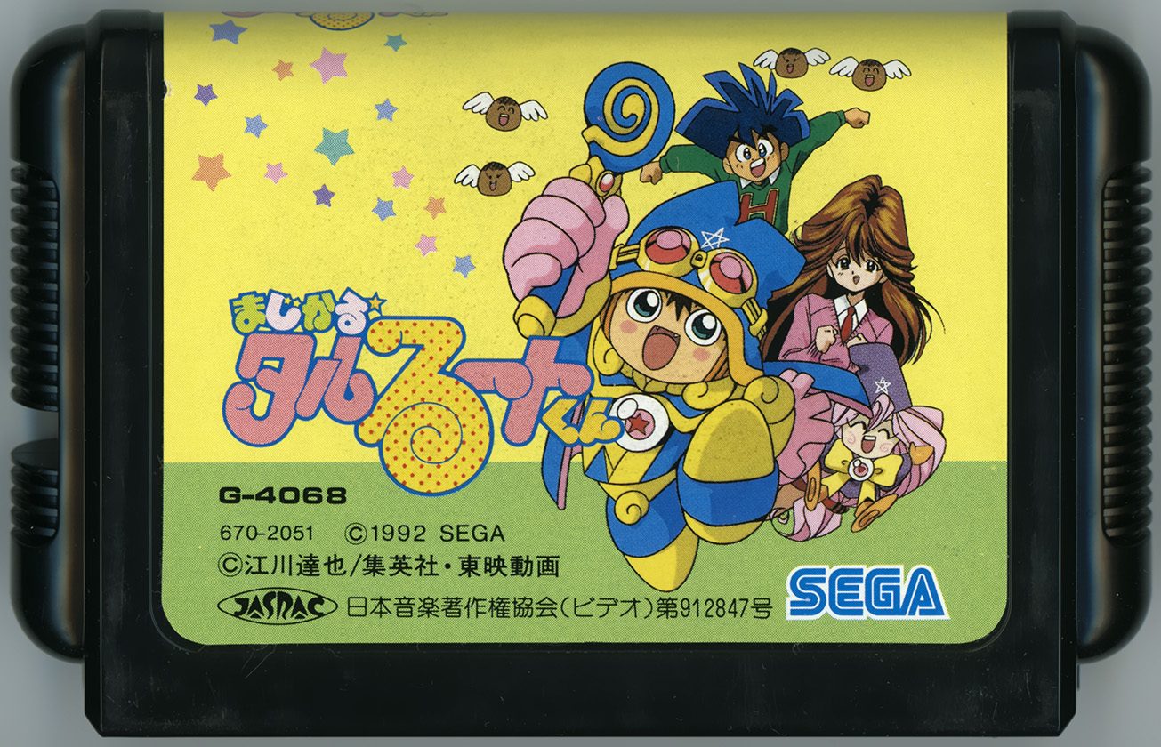 Based on a popular manga comedy published in Shonen Jump, Magical Taruruuto-kun is about a boy named Edojou Honmaru who is constantly being bullied at school until he calls the titular hero Taruruuto from another world to help him. It is a cutesy platform game that plays similarly to most other games of its genre. There are many hazards to jump over and end of level boss fights, Taruruuto can hit enemies with his wand or pick up items and throw them.