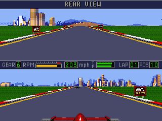 There are 27 computer-controlled cars with individual profiles, and 8 cars to choose from in each race, with varying engine, grip, brakes and pit crew standards. You can view the action either from behind the car, or from the nose. In longer races you must monitor the pit strategy, with the options of a splash 'n' dash stop if your tires are still fine.