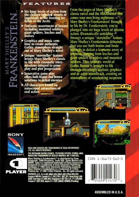 Based of the 1994 movie remake of Frankenstein, the player is the artificial man created by Victor Frankenstein. After Victor rejects his creation due to its hideous appearance, the creation flees from Victor and swears revenge on him.
