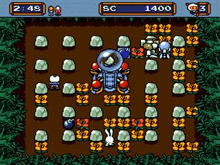 Mega Bomberman is a top-down action game. Control your Bomberman through various levels defeating multiple enemies and plenty of bosses. Each level consist of blocks for exploding and some blocks that don't explode. At times you will need the non-exploding blocks as shelter. The blocks that do explode reveal power-ups and eggs.