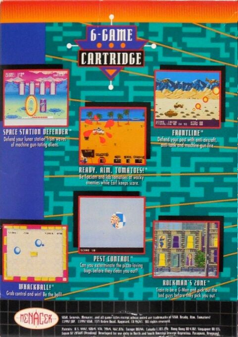 Menacer 6-Game Cartridge was released as a pack-in cartridge for the Menacer light gun. It is a compilation of six games: