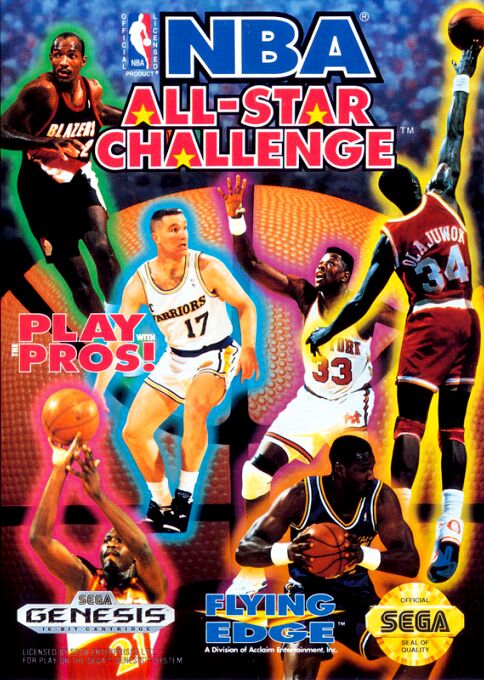 NBA All-Star Challenge offers one-on-one basketball featuring NBA players from the 1991-1992 season. Five different playing modes are available: a single one-on-one match, a free throw competition, a 3 point shootout, a H.O.R.S.E. competition and a one-on-one tournament. You can choose from 27 players (one from every NBA team), including Michael Jordan, Larry Bird, Patrick Ewing, Karl Malone and David Robinson. Each mode can also be played by two players.
