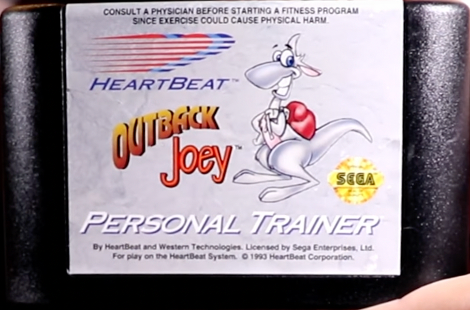 Outback Joey is the only game released for the HeartBeat Personal Trainer, a Sega Genesis-based fitness system. Using a pulse sensor and game control pads mounted to an exercise bike, stairclimer, treadmill or ski machine, players have to exercise while playing an otherwise traditional 2D platformer. The player's heartbeat is directly tied to the player character's in-game speed, with a healthy heartbeat allowing him to move faster and a resting heartbeat slowing him down to a slog. Players can create a profile with their name, age, and gender, and their health data is tracked persistently over time to let them track their progress.