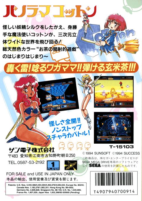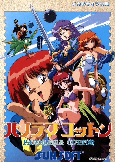 Panorama Cotton is a pseudo-3D scrolling shooter reminiscent of Space Harrier, set in an anime-style fantasy world. Various levels scroll "into the screen", vertically, horizontally, or diagonally. The player can move Cotton over the screen, shooting at oncoming enemies and avoiding obstacles on her way. Cotton can upgrade her weapon to higher levels as the player advances in the game, and can also cast magical spells by collecting special items.