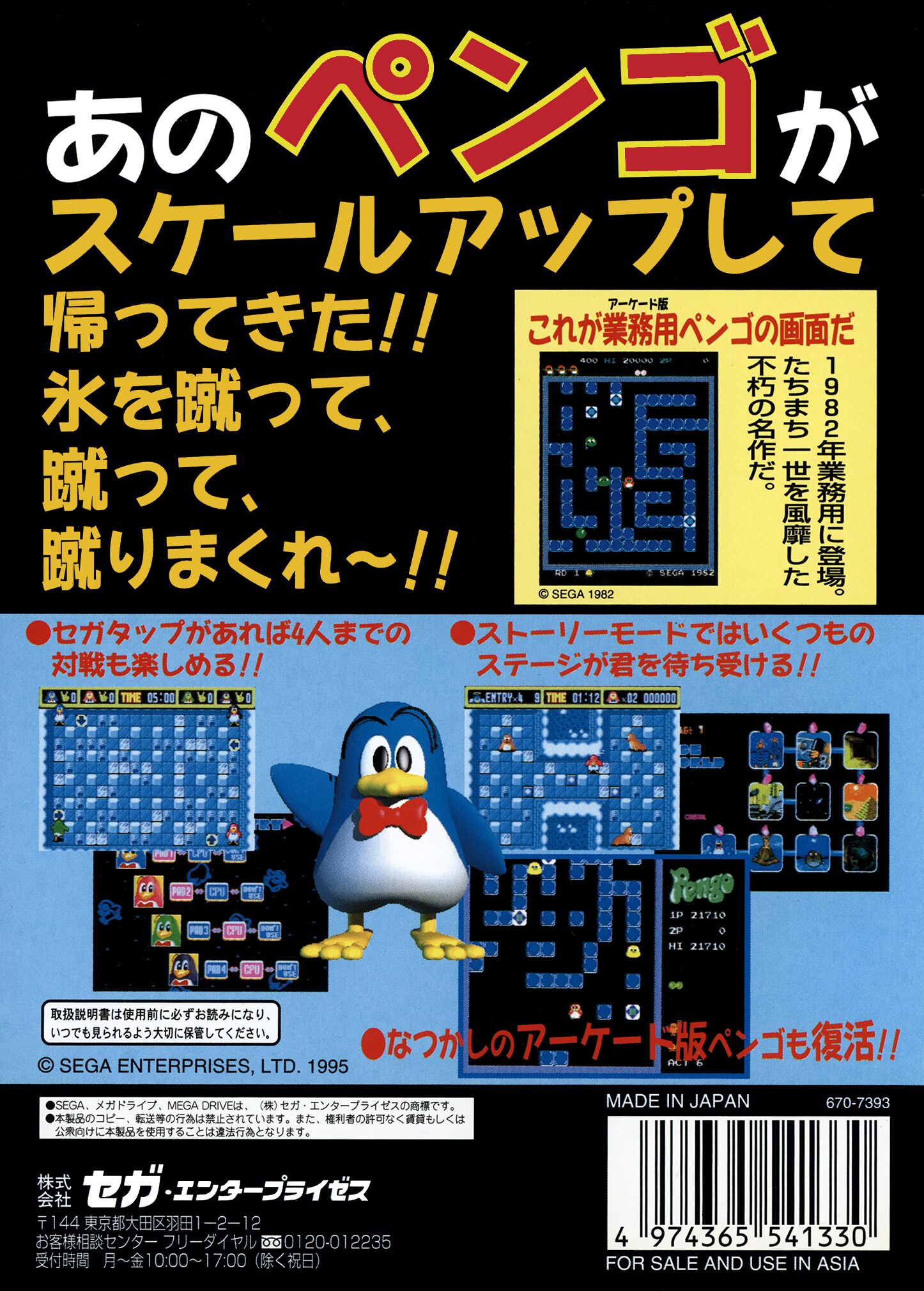 The Sno-Bees are back! One day in Antarctica, an asteroid crashes into the crystal that protects the penguins, shattering it into many pieces and freeing the Sno-Bees who had been frozen in ice. In order to rescue his people, the blue penguin (along with a pink penguin in two-player mode) goes after the Sno-Bees and to recover the missing pieces of the crystal. The game takes the basic template of the 1982 original and expands on it, offering a greater variety of enemies, various environmental hazards, and power-ups, along with of course updated 16-bit graphics and sound. The goal is still to push blocks and crush enemies. Enemies now appear from generators, which must be destroyed to stop new enemies from appearing, and all enemies must then be eliminated to complete each stage.