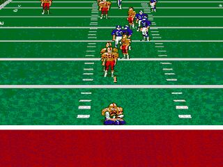 Gameplay consists of playing on both offense and defense. There are 26 different offensive plays and 18 different defensive plays to choose from. The game has a down the field view when on offense, so the game doesn't have receivers in windows.