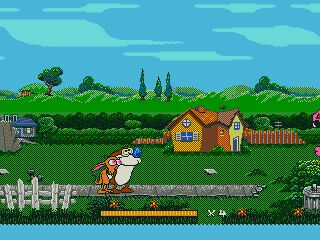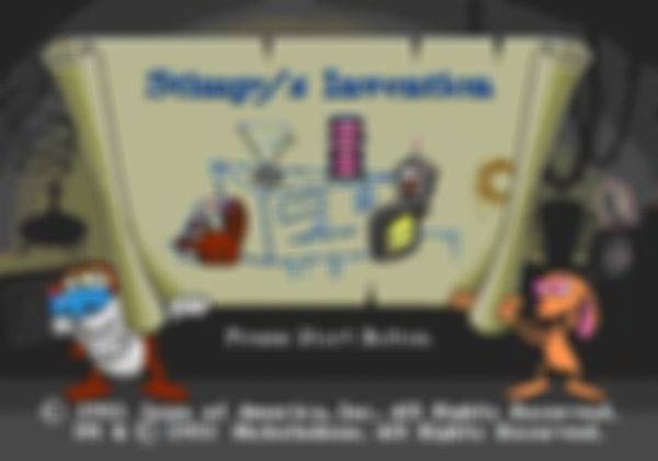 Stimpy has invented a wondrous, diabolic machine... The Mutate-O-Matic! Unfortunately it explodes, and having pieces of a Mutate-O-Matic lying about is not a good thing. So Ren and Stimpy embark on an adventure that spans Mr. Horse's refrigerator, to the pound, and even... The Great Outdoors! References from the cartoon are frequent, coupled with lots of side-scrolling action.