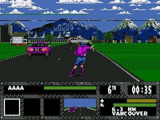 You rollerblade (inline skate) down the road, grabbing tows from passing cars. Grab weapons to beat back your opponents. Race from city to city to earn money. Buy better skates, weapons, and protection with your winnings. This game is clearly derived both in technology and in design from the hit Road Rash series, and was released during the great rollerblading boom of the early-to-mid nineties.