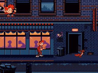The player controls Spirou. He is able to jump, duck, climb ladders and cliffs and run fast if the player holds down the action button. In the fourth level Spirou gets a gun to stand a chance against the increasing numbers of Cyanida’s minions. Spirou’s quest will see him travel through city streets and rooftops, a toy store, subway, Palombian swamp and jungle and other locations in over 12 levels.