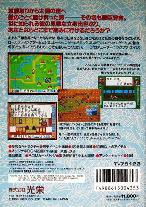 Taikō Risshiden is an open-ended strategy RPG set in Sengoku-period Japan, where the player takes the role of a subordinate of warlord Oda Nobunaga named Tōkichirō Kinoshita. The player chooses one of several possible professions, rolls their attributes, and must become successful in their chosen life.